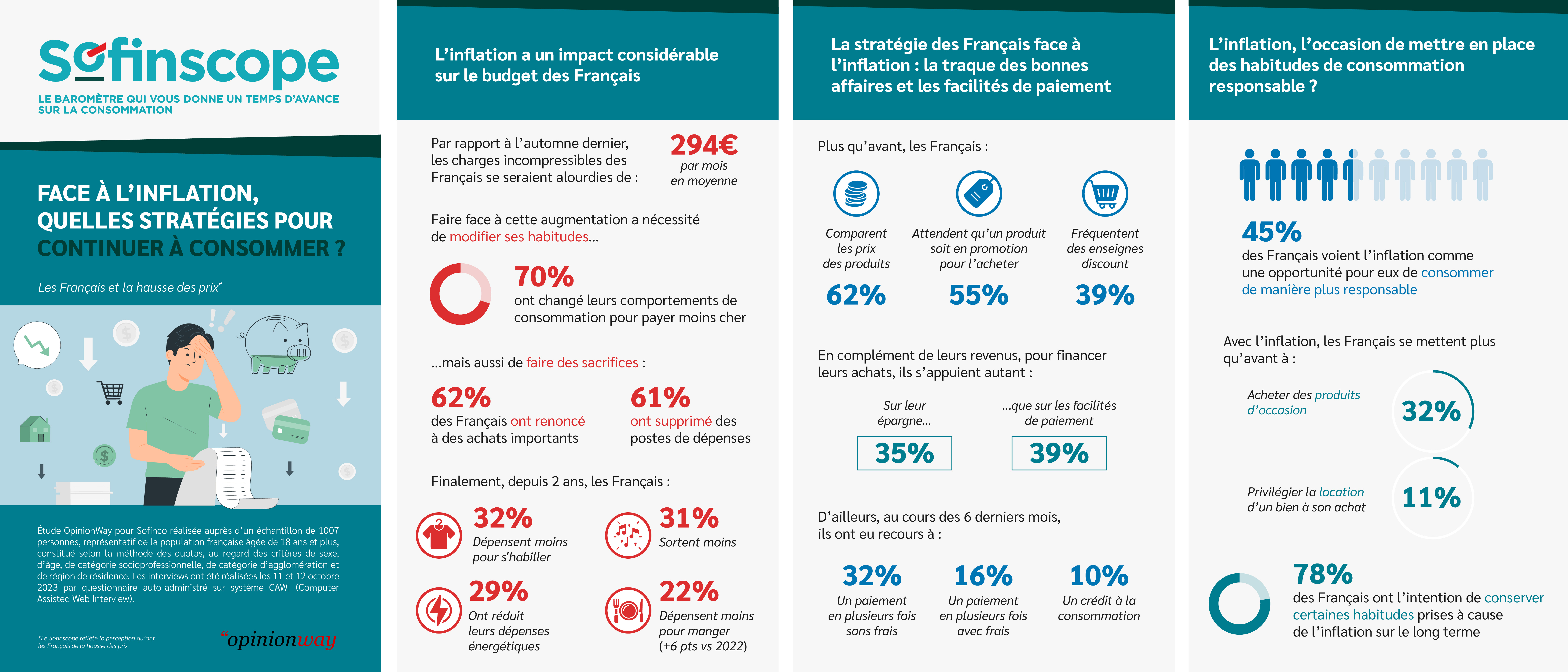 Sofinscope est le baromètre de Sofinco, marque de Crédit Agricole Consumer Finance. Destiné à sonder les Français sur leurs habitudes de consommation et à mieux les comprendre, ce baromètre qui s’inscrit dans le quotidien des Français est réalisé par OpinionWay pour Sofinco, auprès d’échantillons représentatifs de la population française.